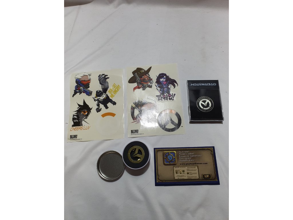 OMNIC WAR MEDAILA + ODZNAK + 2 SADY NÁLEPIEK + HEARTSTONE KARTA