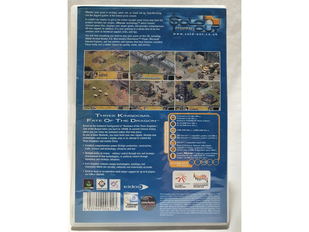 PC THREE KINGDOMS FATE OF THE DRAGON SOLDOUT EDÍCIA PC CD-ROM