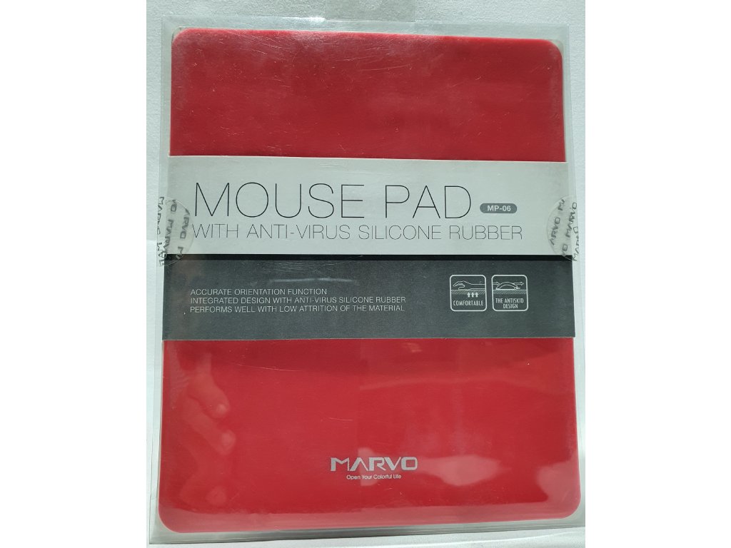 PROTIVÍRUSOVÁ PODLOŽKA POD MYŠ MARVO MP-06 ČERVENÁ . ANTIVIRUS MOUSEPAD MARVO MP-06 RED