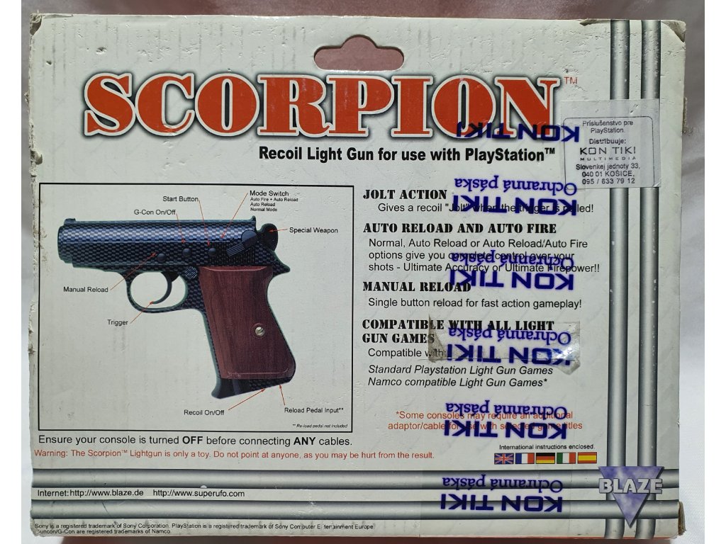 PXH BLAZE SCORPION LIGHT GUN CARBON PIŠTOĽ ČIERNA+GCON ADAPTÉR PRE PLAYSTATION 1 A SEGA SATURN