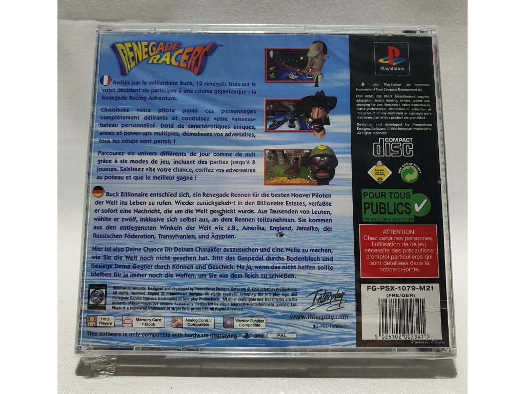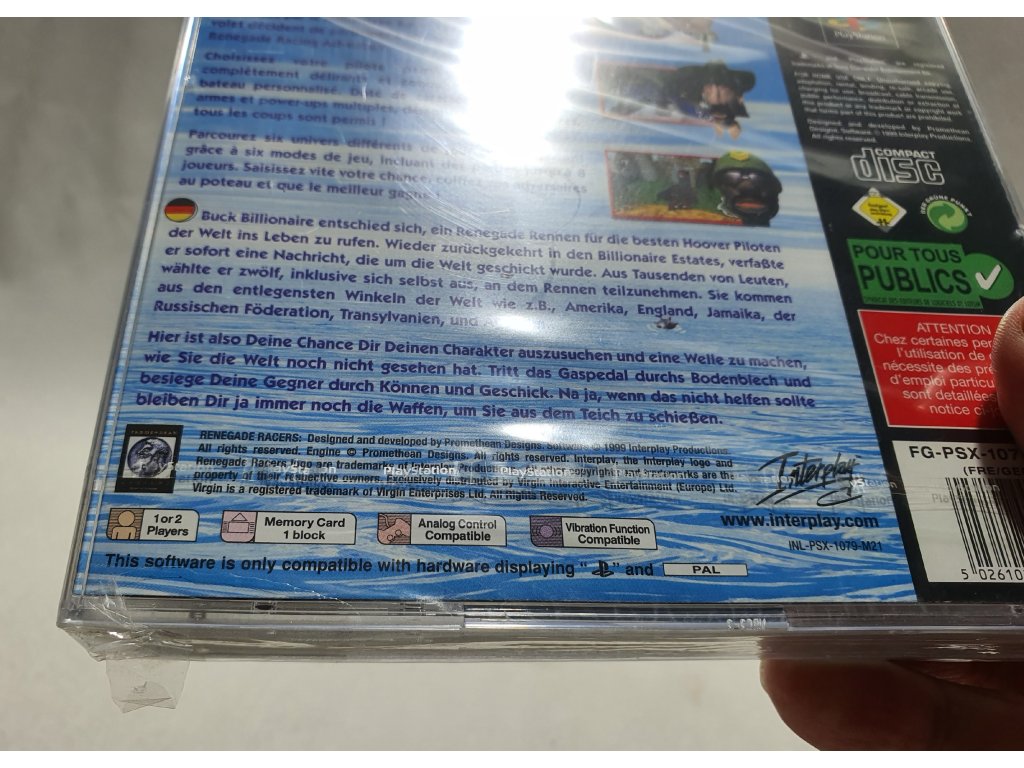 RENEGADE RACERS Playstation 1 PAL SLES-02274 Originál Fólia - poškodená fólia